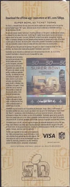 Full Unused Super Bowl Ticket - $1500 Main Level Silver Variation