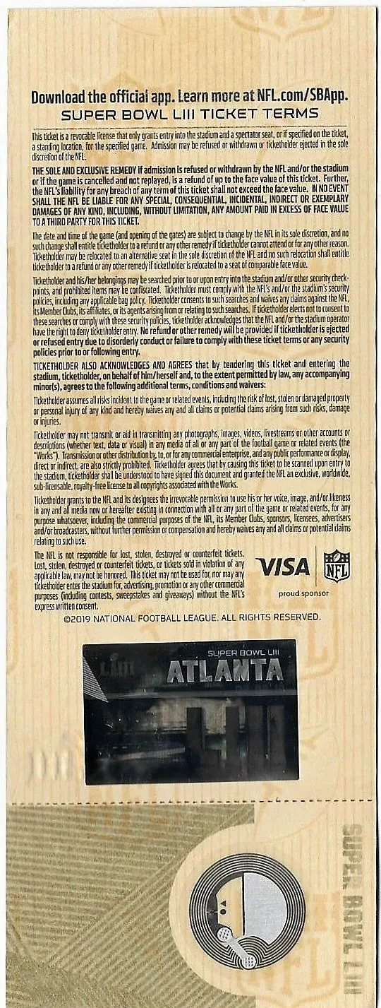 Full Unused Super Bowl Ticket - $1250 Blue Variation