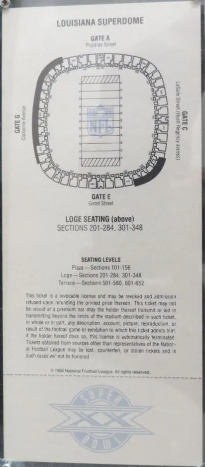 Super Bowl XX Ticket